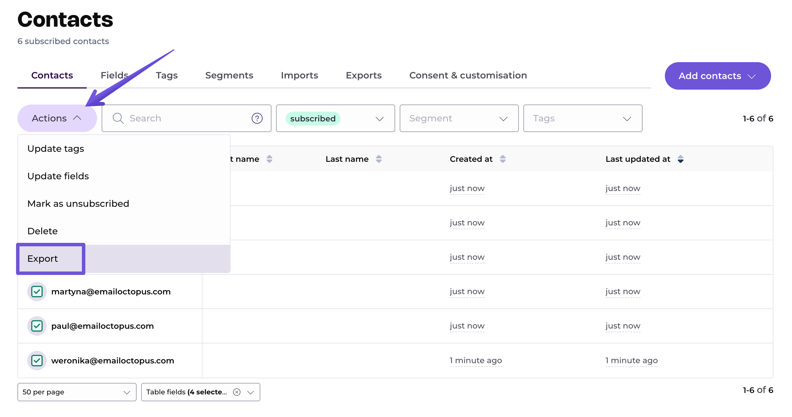 To export your whole list of subscribed contacts: