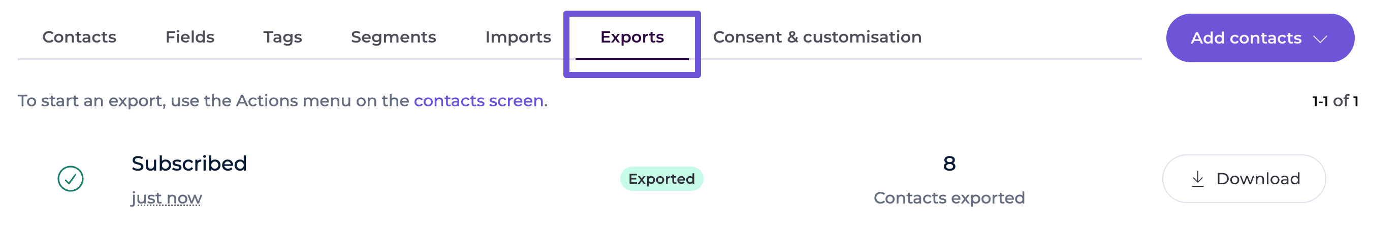 If you wish to re-download the list, you can do so from here. The export will be available for download for 7 days after completing the export.