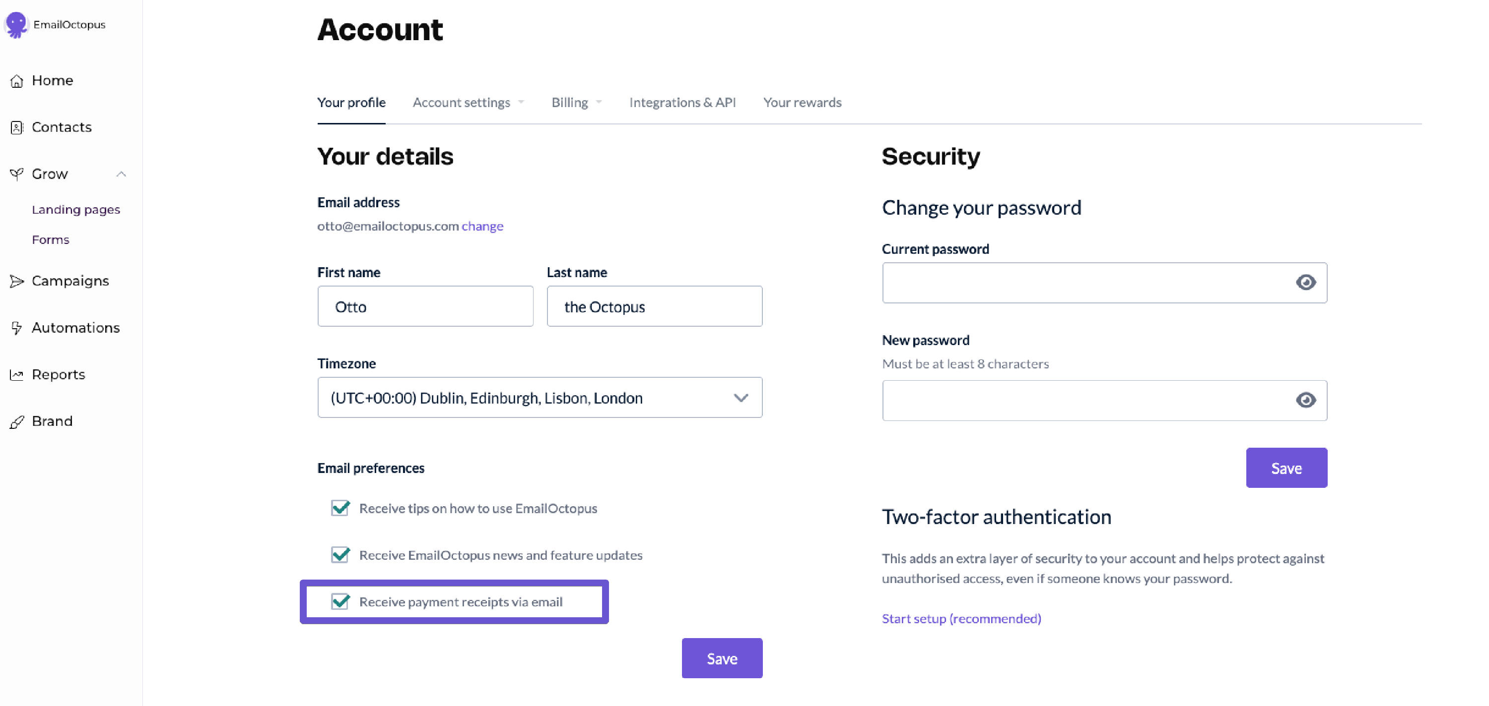 You can choose to receive receipts via email in your account profile, under the Email preferences heading. If you'd like a colleague to receive these receipts, invite them to your account and ask them to enable the setting in their account.
