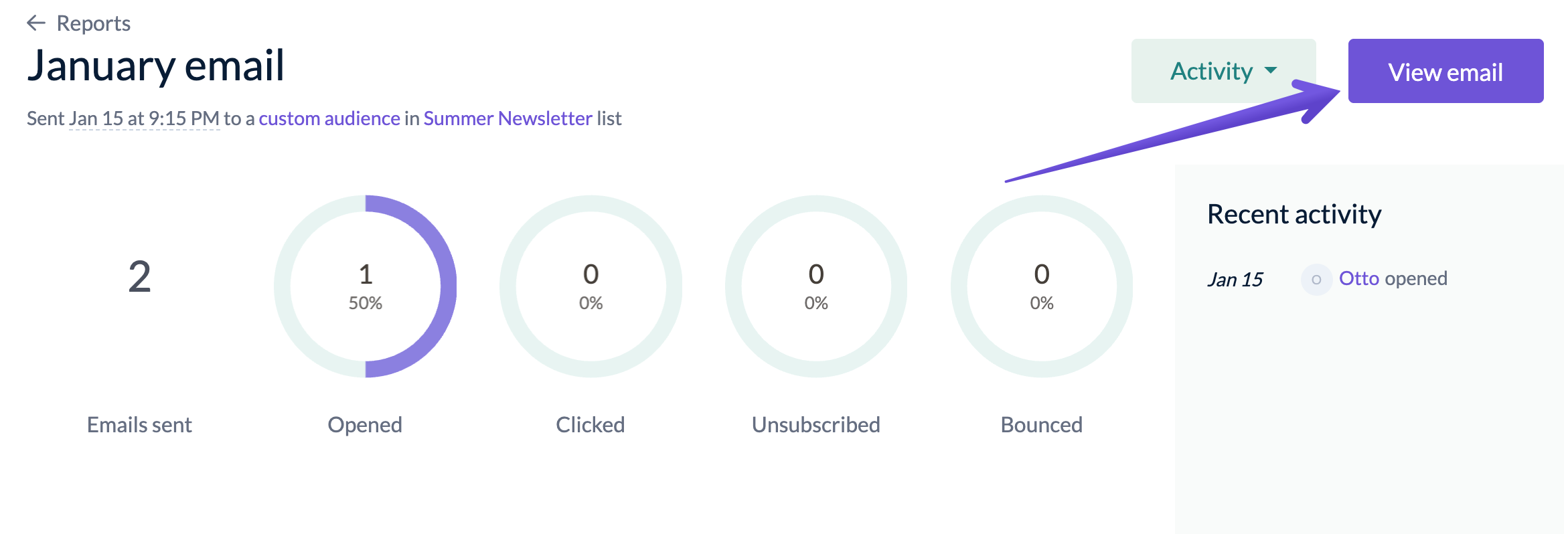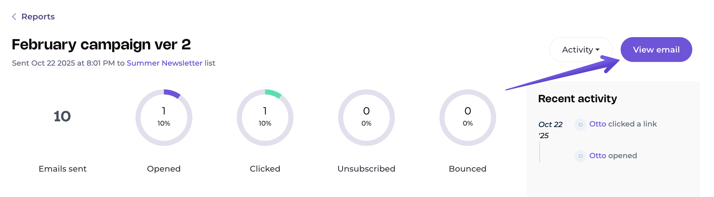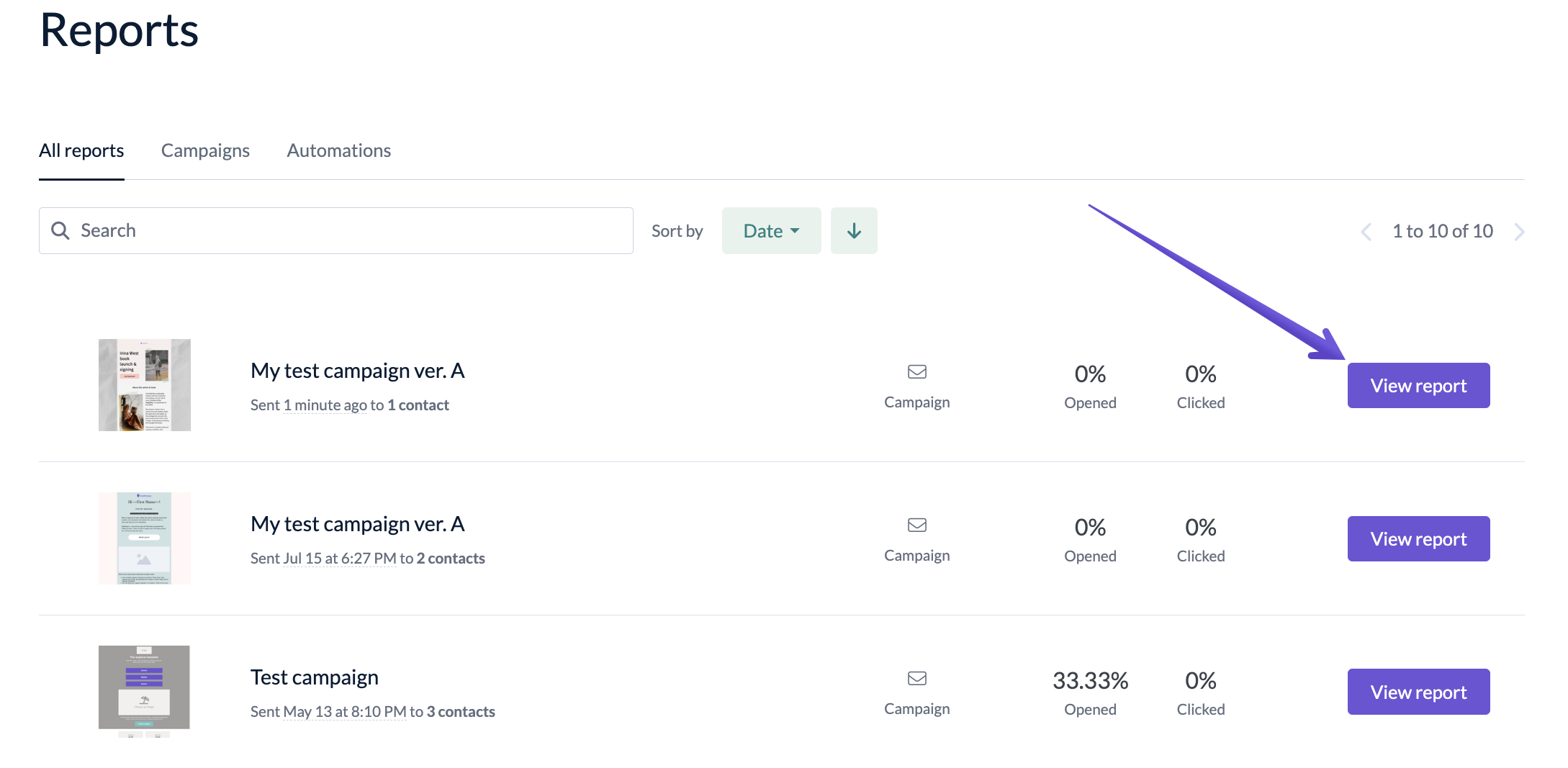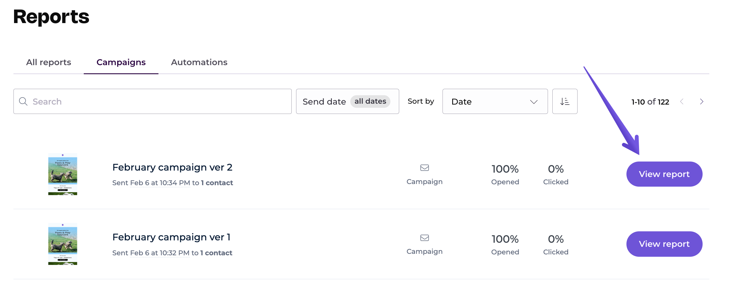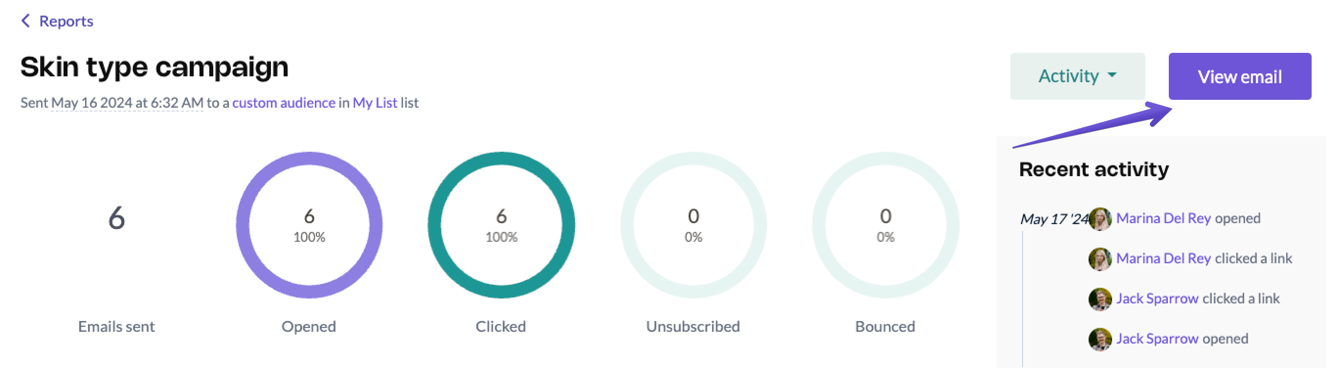 To access the online version of your campaign, go to the Reports tab and click the View report button next to the selected campaign.