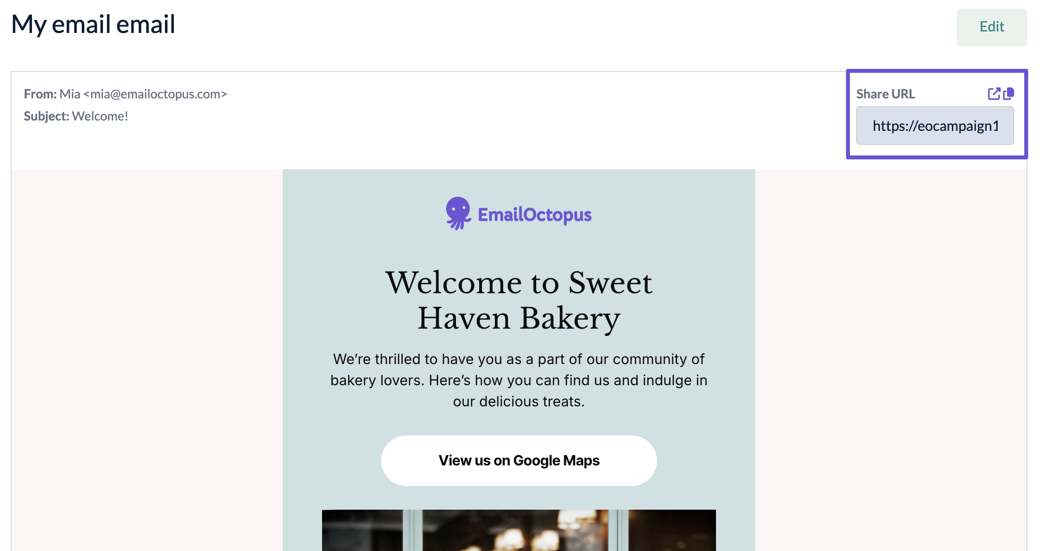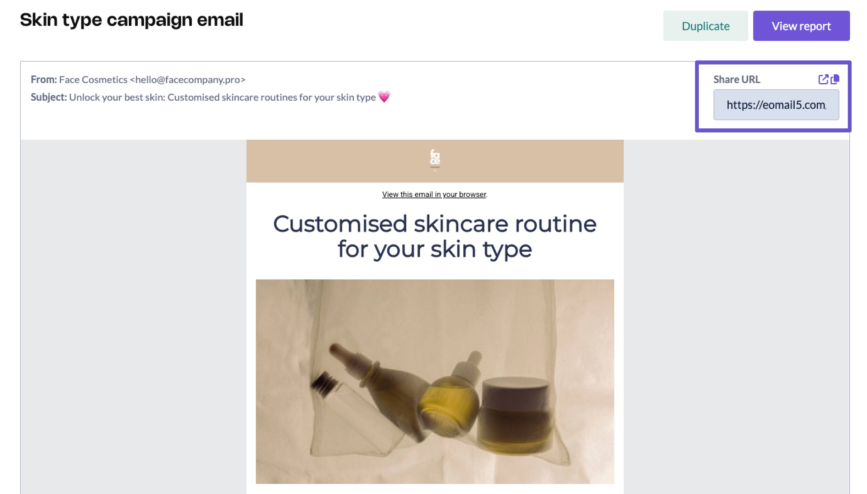 In the preview, you will find a link to the web URL version of your email. You can copy the link directly from here or open your campaign in a new tab.
