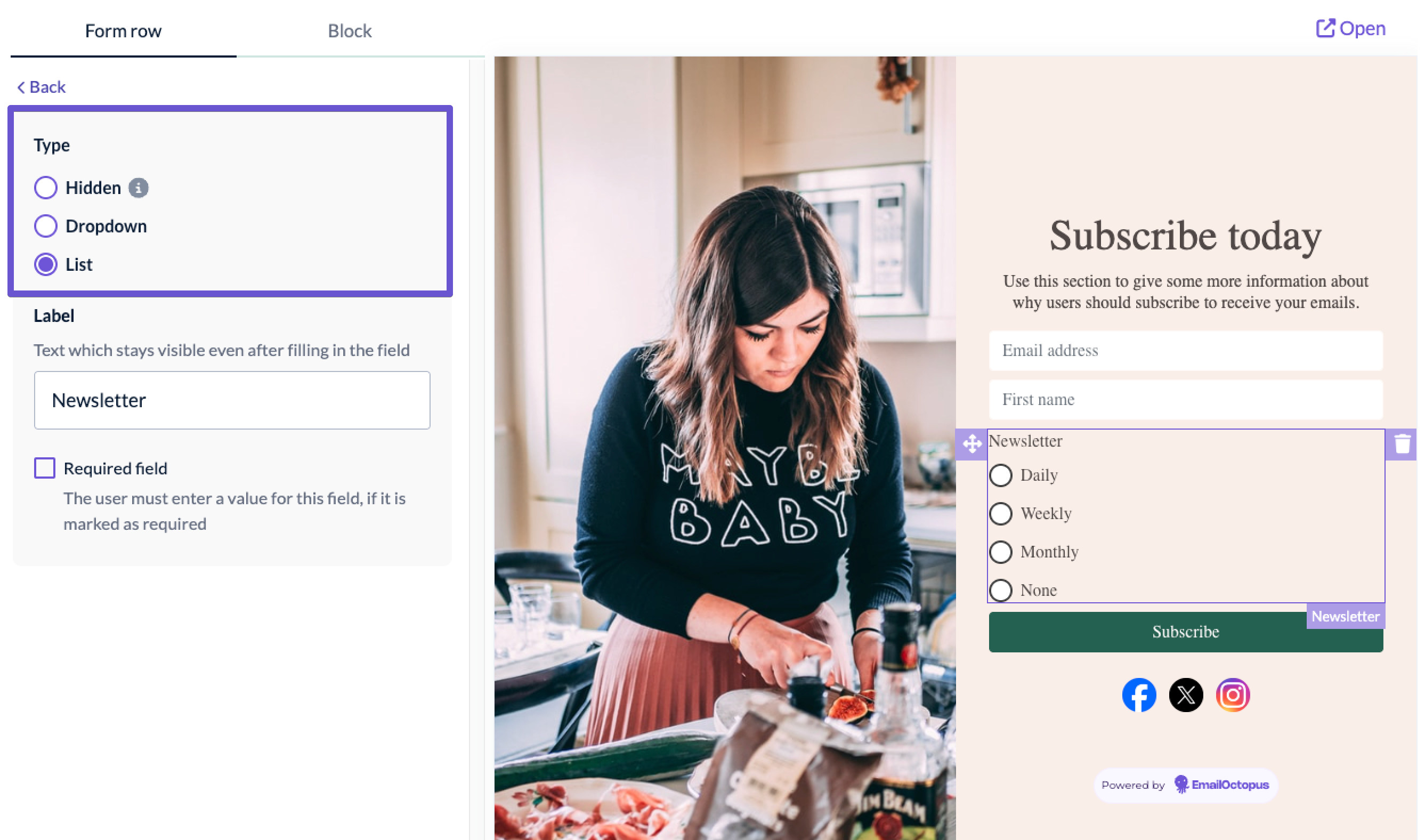 If you tick the box to make it a required field, your subscriber will need to fill it out before submitting the form.