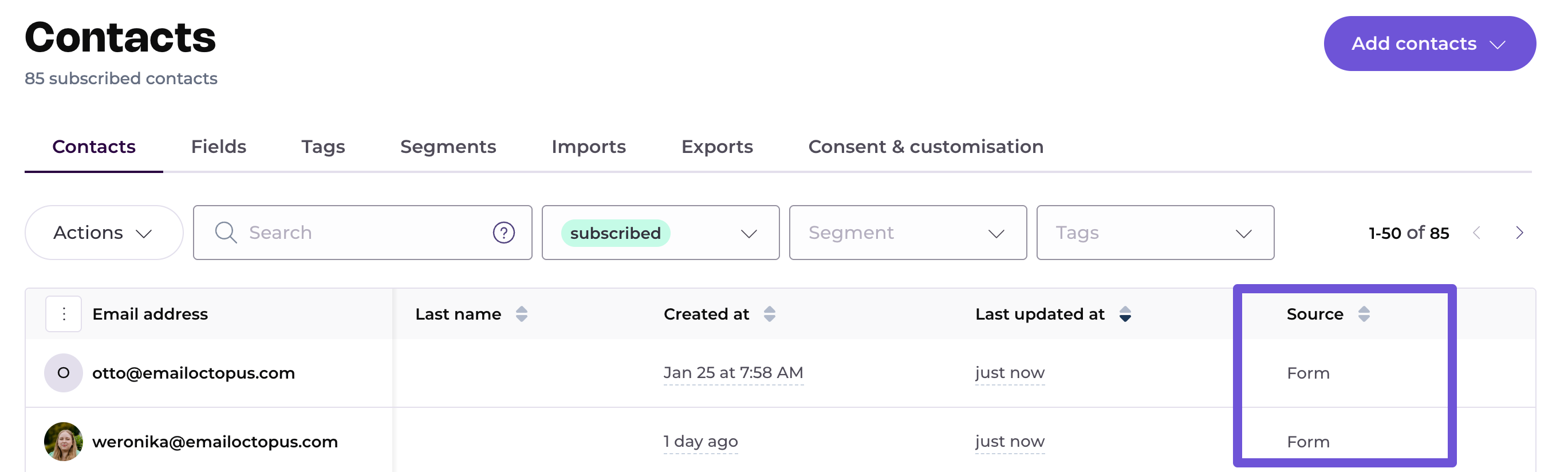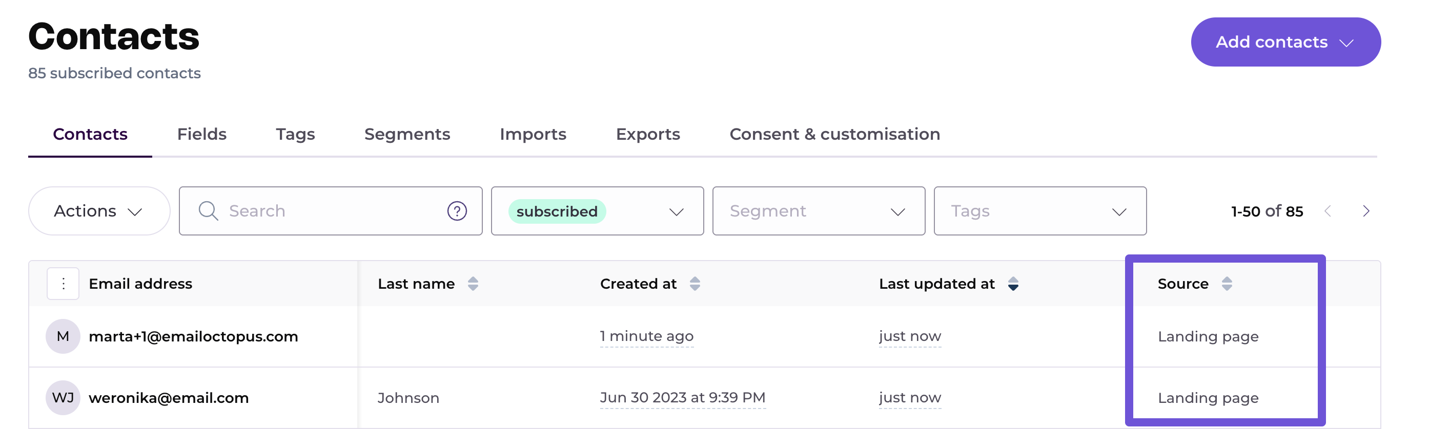 You can use hidden fields to track your forms and landing pages' performance and subscription source. These fields will be automatically assigned to all contacts who sign up using your form or a landing page.