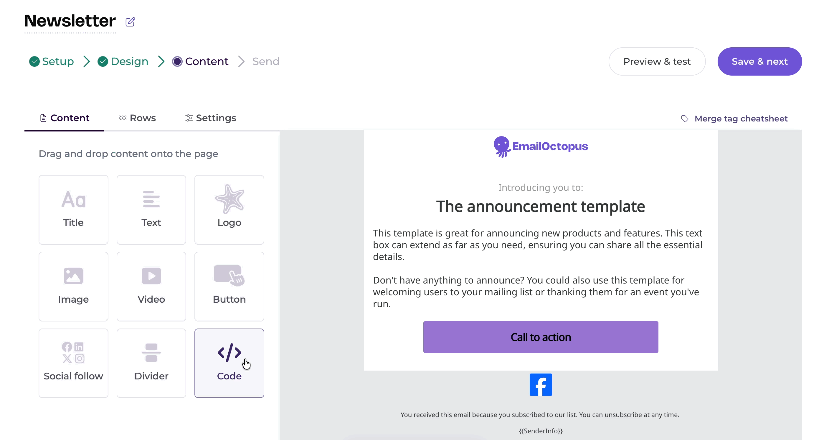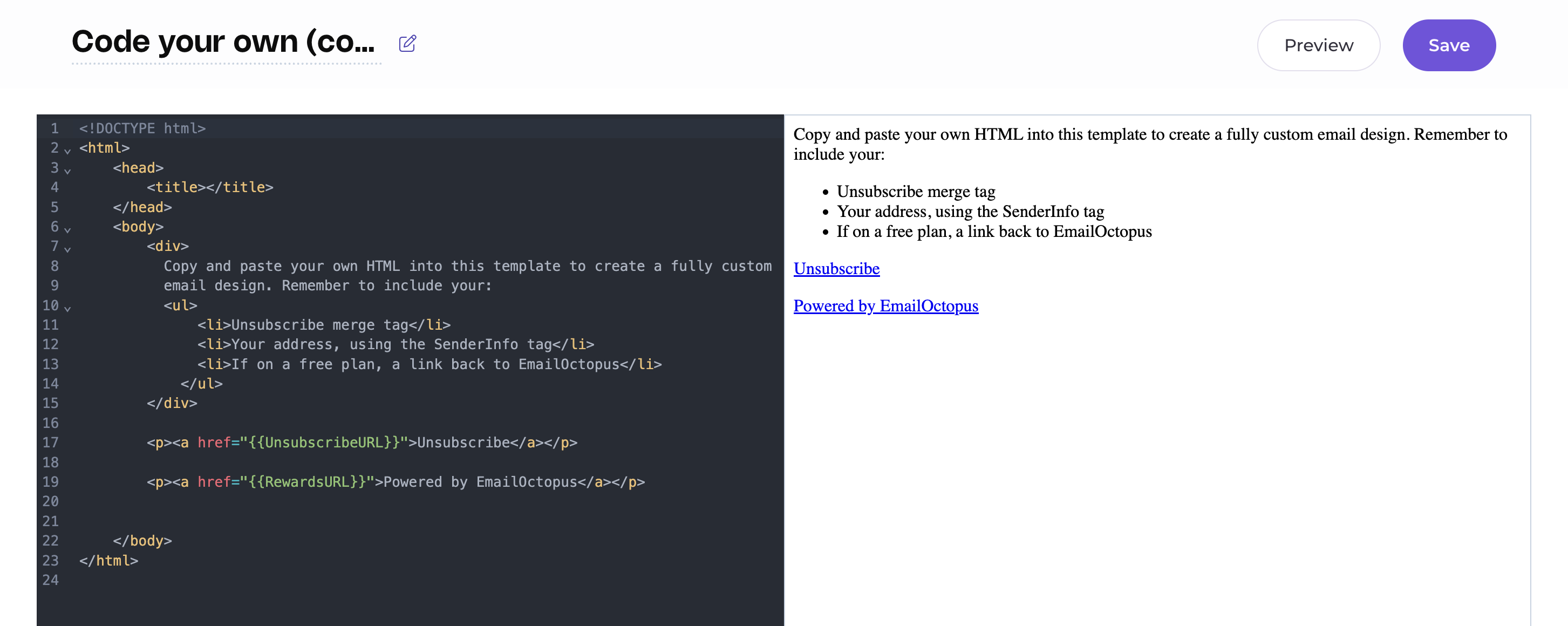 EmailOctopus gives you options to add your HTML code to your campaigns.