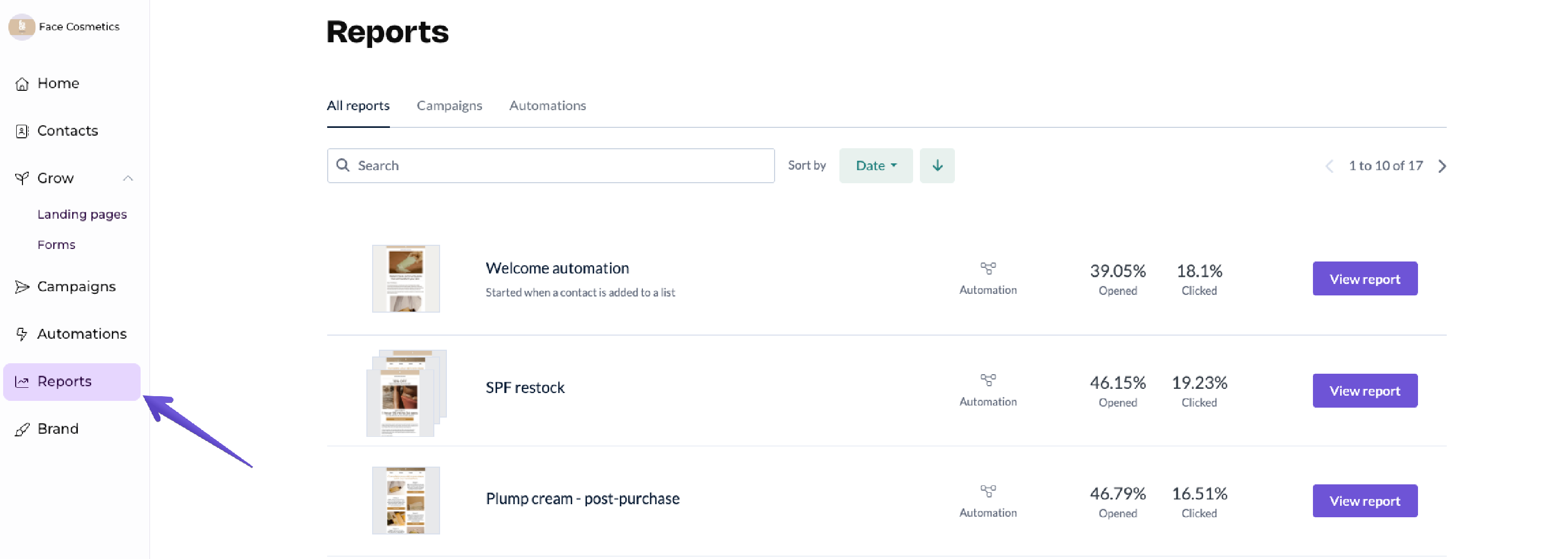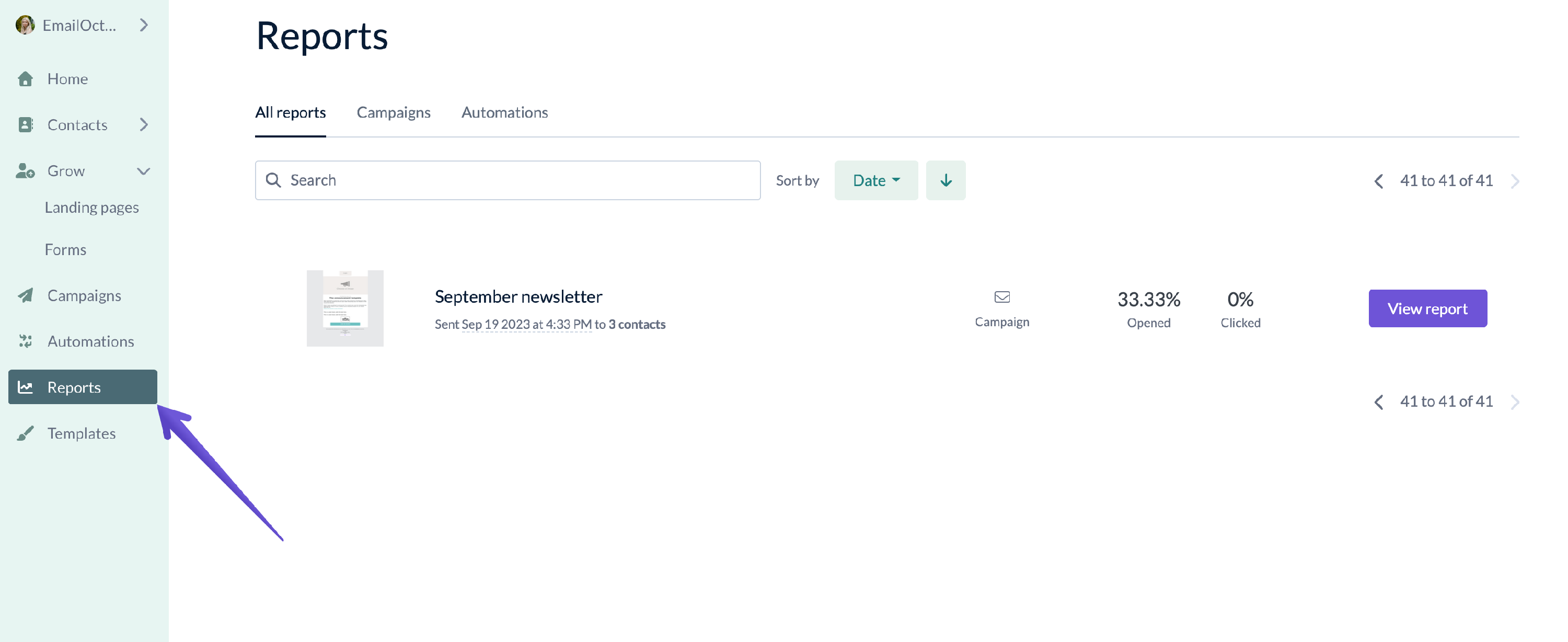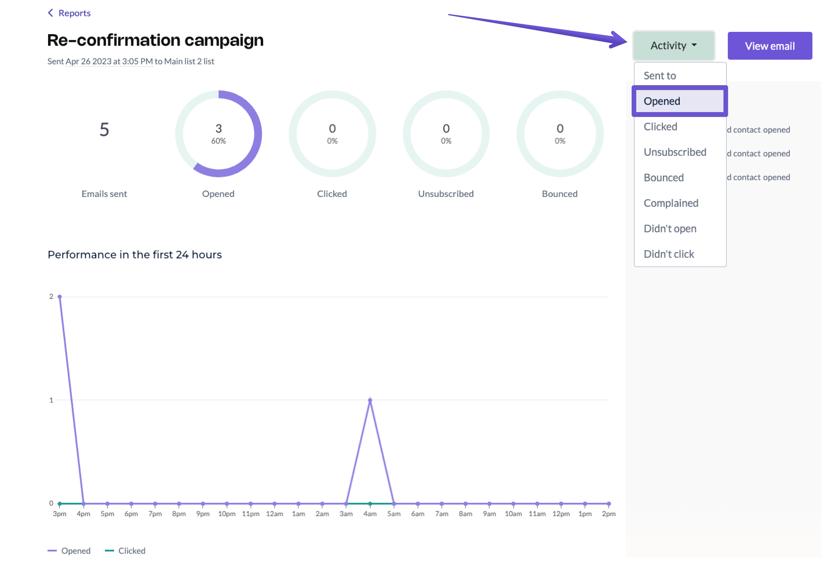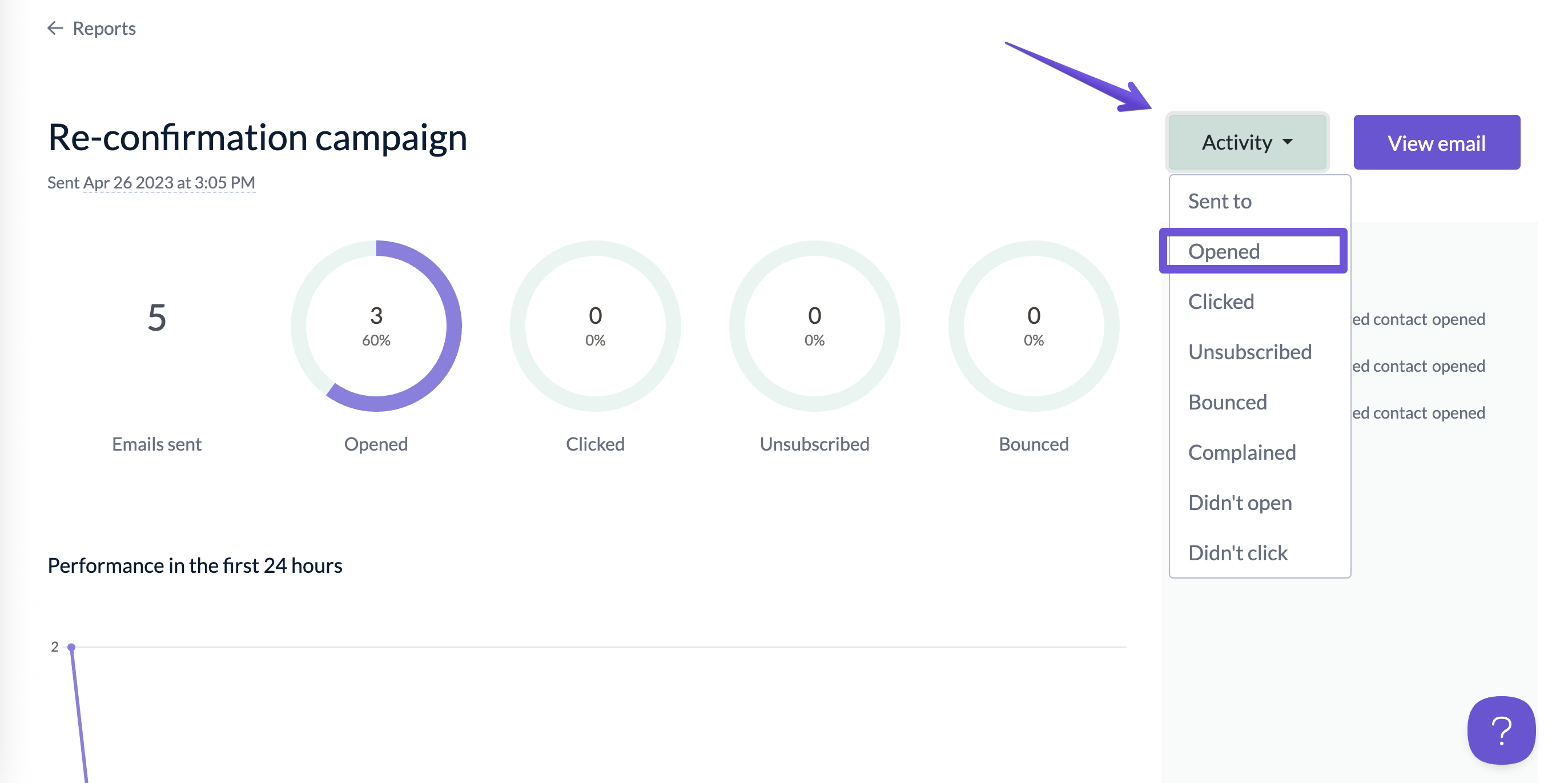 Once there, click the "View report" next to the chosen campaign to access its report.