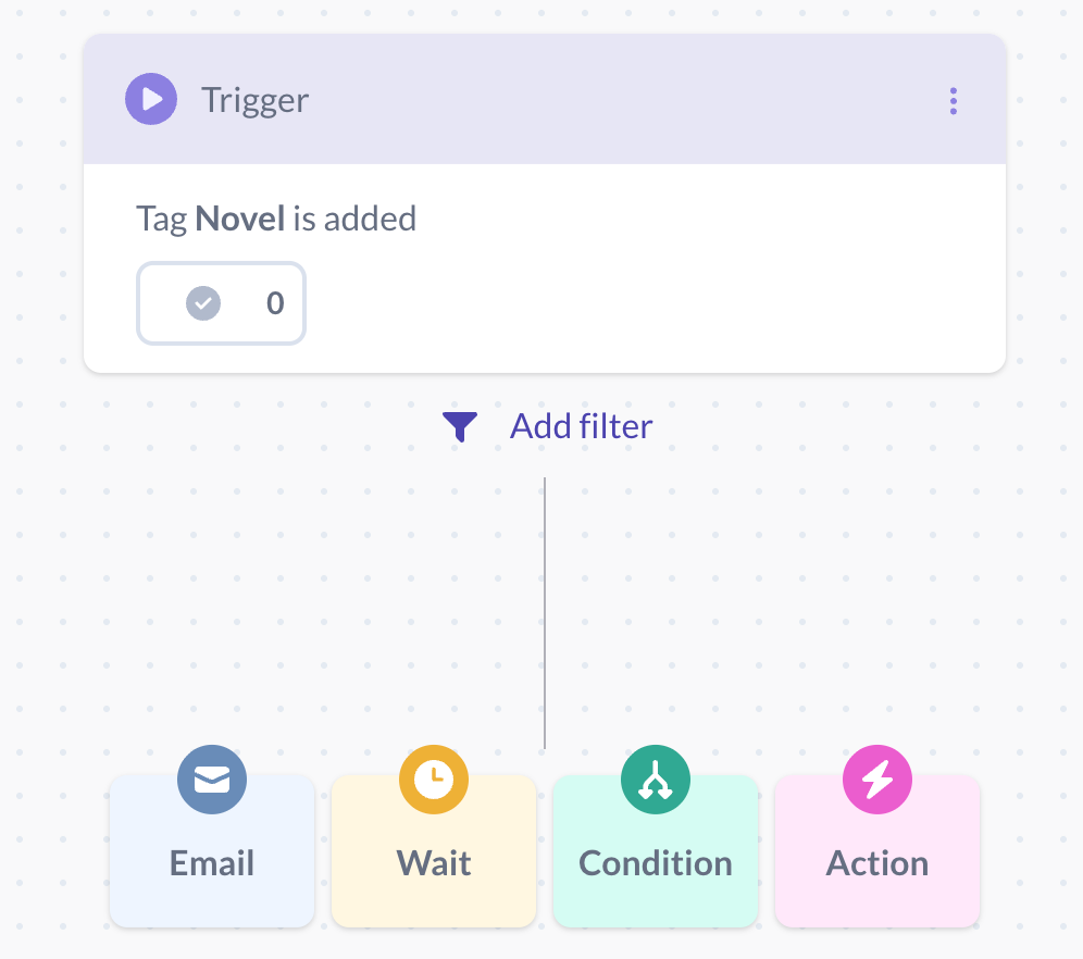For example – if you're an author and you tag your subscribers based on the books they're interested in, you can use advanced automation to create automated promotional emails for people interested in specific series. You would use "Contact tag added" as your trigger in that example.