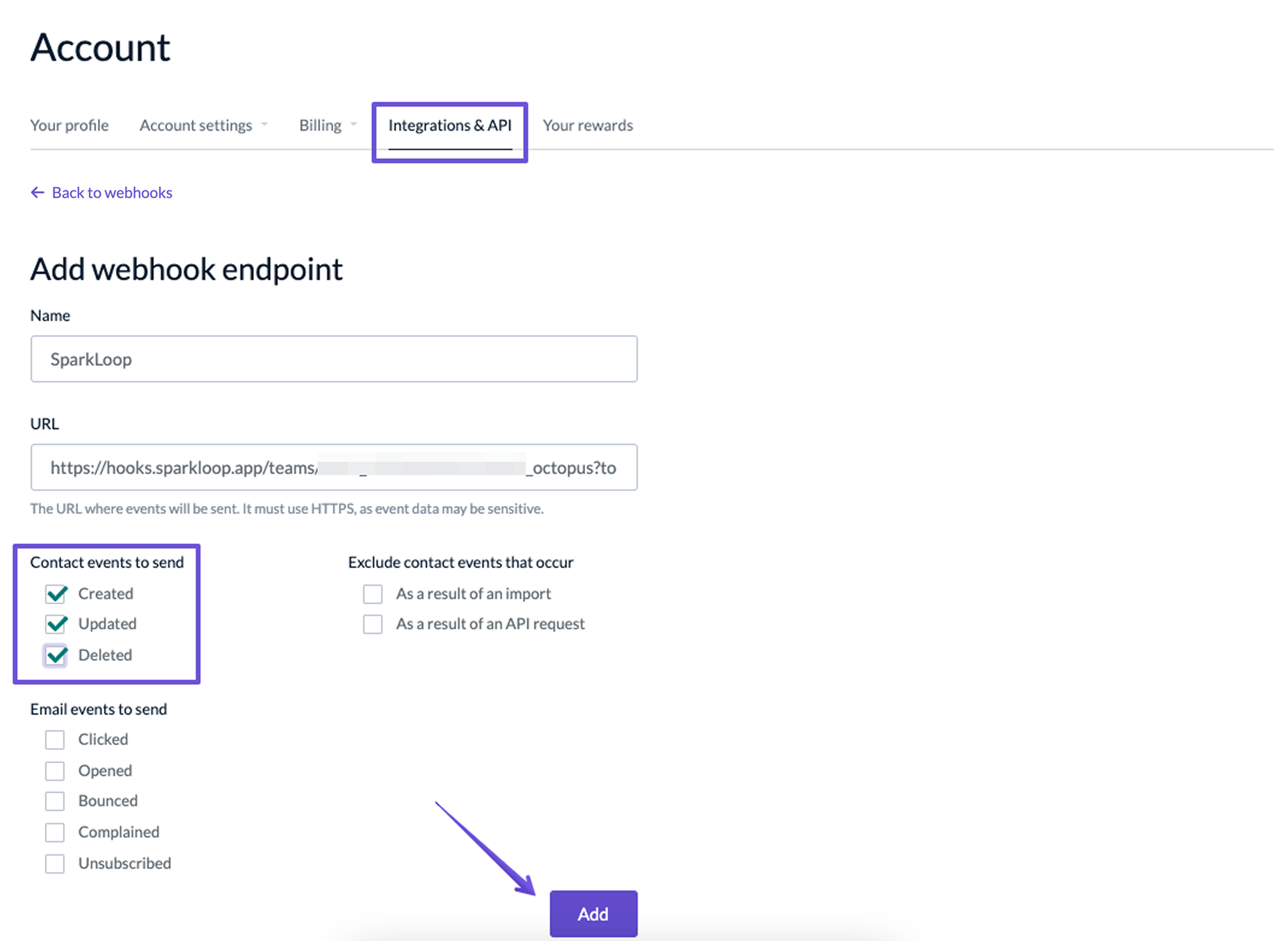 Connect SparkLoop to Emailoctopus