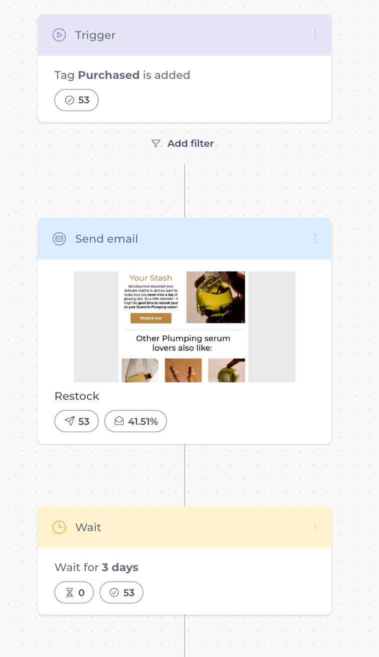 You can continue your automation sequence by adding more conditions and actions or sending more emails, all based on how people interact with your automated emails.