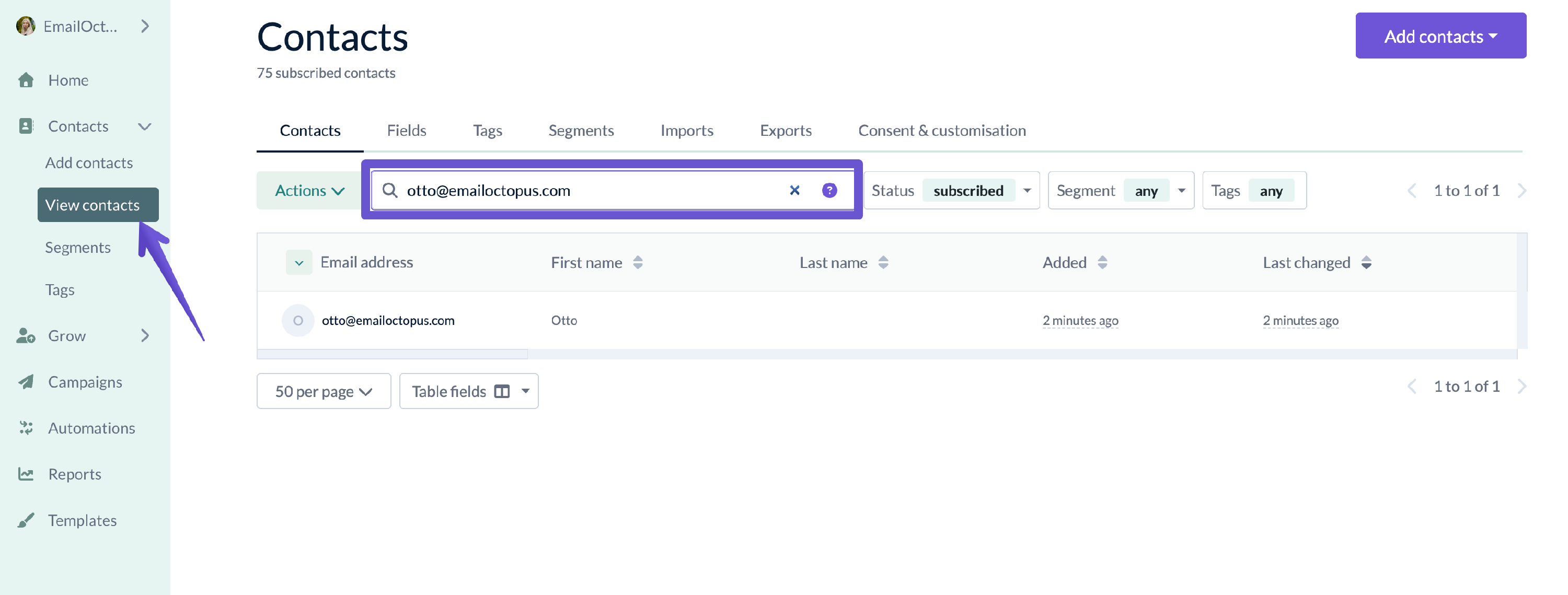 If you need to edit the data or the subscription status of one specific contact, there's an easy way to do this.
