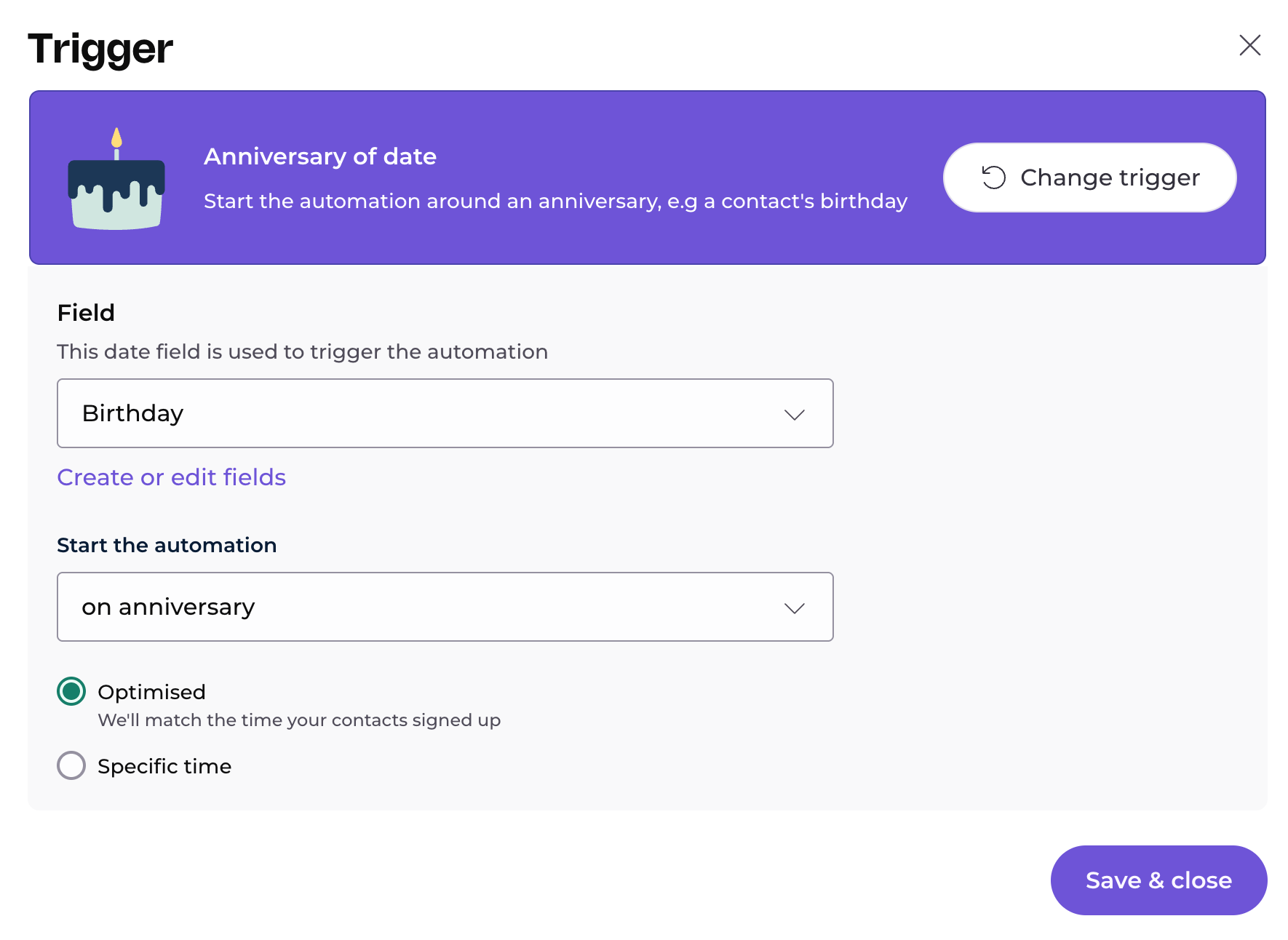 For example, if you collect your subscribers' birthday data, you can use it to trigger an automation exactly on their birthday (or a few days before or after), every year.