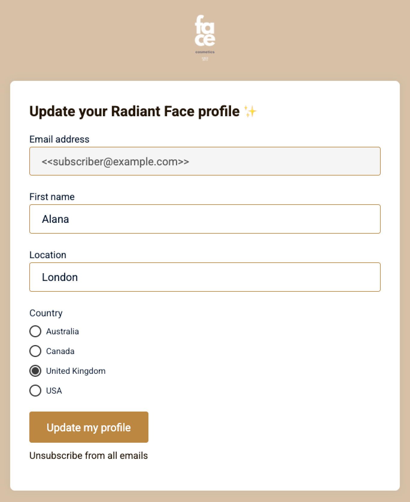 And this is what your subscribers would see on their end once they've clicked on that link (depending on the data they have provided):