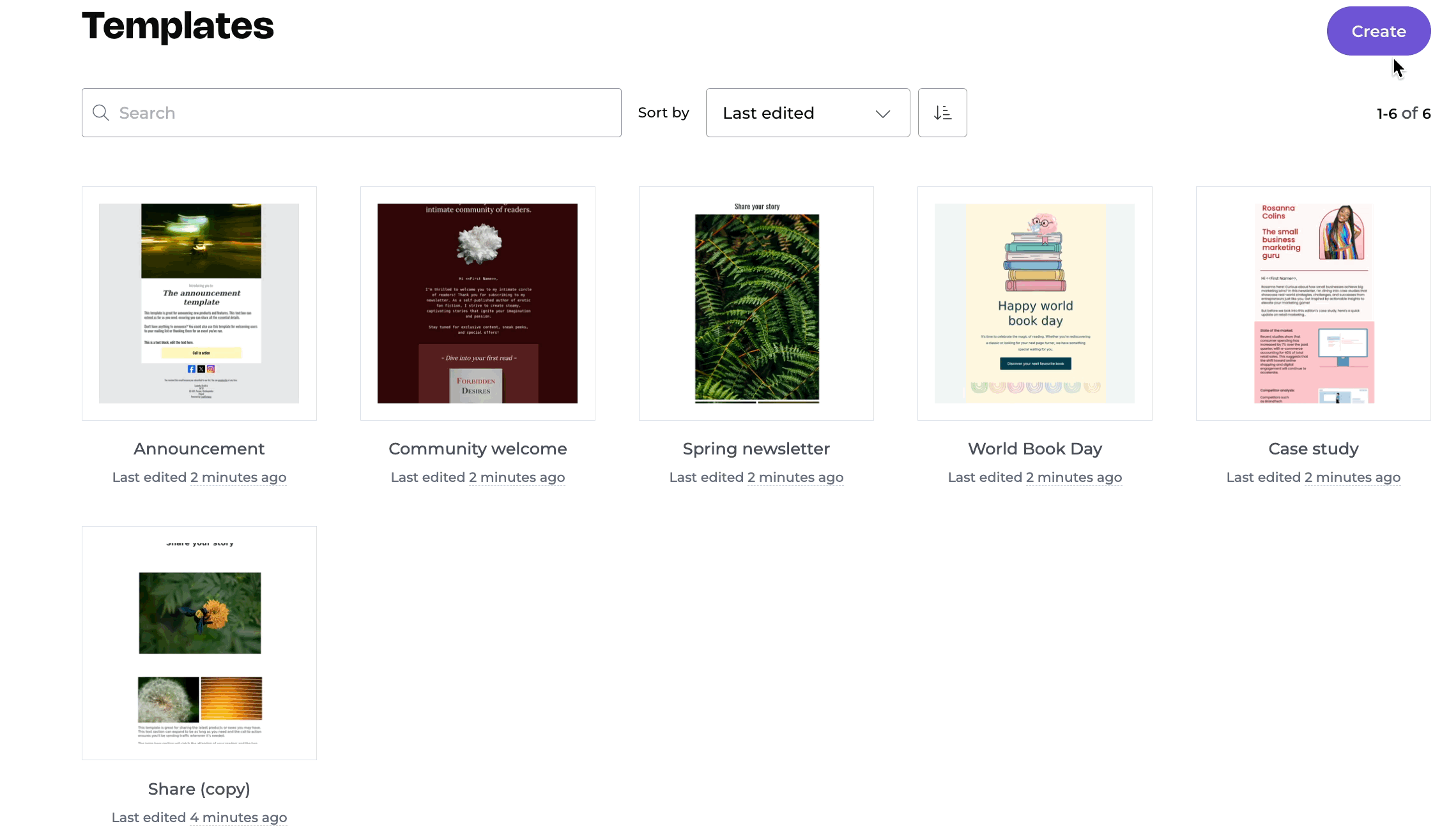 To create a new template, head to your templates screen in the Brand tab and click Create.